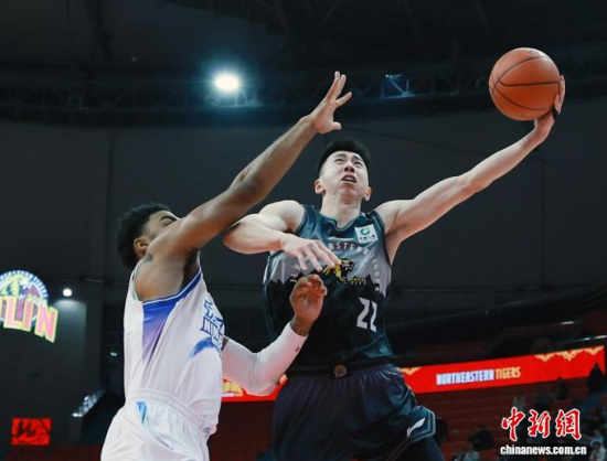 吉林隊22號賈昊(黑衣)正在上籃。 吳金澤 攝