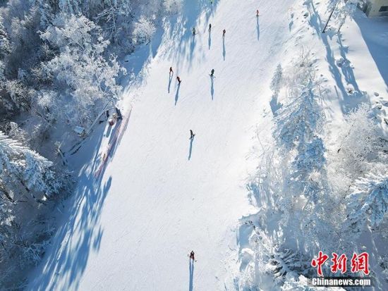 11月30日,一場(chǎng)降雪過后,吉林北大湖滑雪場(chǎng)現(xiàn)高山霧凇。漫山遍野的樹木皆被冰晶裹挾,潔白如玉,滑雪愛好者如置身雪國。北大湖滑雪場(chǎng)高山霧凇美景如畫。(記者 蒼雁/攝)