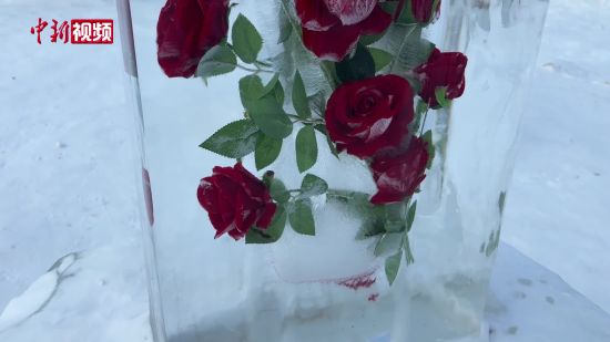 吉林長春:冰雪玫瑰相映成畫引游客參觀