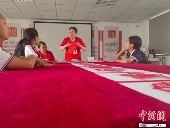 李影蘭正在給非遺手工愛好者講解剪紙技術(shù)!∈橛 攝