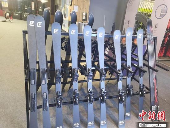 吉林北大湖雪場展示的碳纖維滑雪板!∈橛 攝